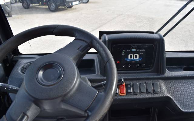 Actuellement, nous utilisons le G4 équipé d’un plateau fixe et de rehausses, une configuration qui se révèle polyvalente pour nos diverses activités. Cet utilitaire électrique est en service de 6h00 à 18h00 et parcourt environ une vingtaine de kilomètres par jour, soutenant les agents de maintenance dans leurs tâches quotidiennes.
